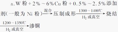 熔滲法分為高溫燒結鎢骨架后滲銅和低溫燒結部分混和粉后滲銅兩種方法。
